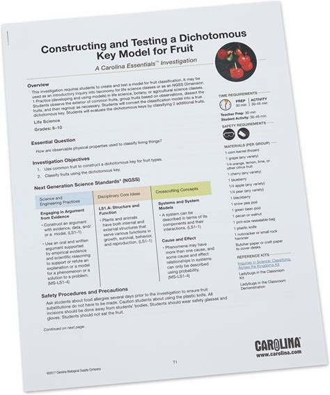 Carolina Science Essential Labs For Middle School: Constructing And Testing A Dichotomous Key Model For Fruit 4-Use Kit